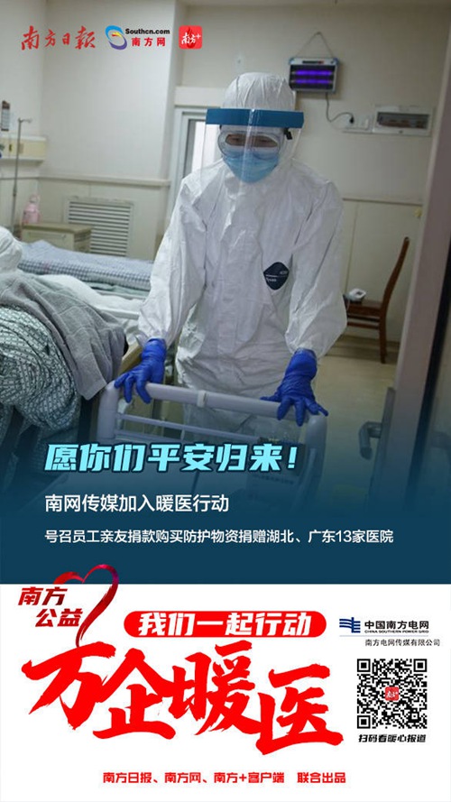 3月3日,南方日?qǐng)?bào)、南方網(wǎng)、南方+客戶(hù)端正式啟動(dòng)“萬(wàn)企暖醫(yī)——我們一起行動(dòng)”公益活動(dòng),旨在聯(lián)合社會(huì)力量用實(shí)際行動(dòng)為奮戰(zhàn)抗疫一線醫(yī)務(wù)人員及家屬解難事、幫家事。同時(shí)發(fā)揮媒體平臺(tái)連接、傳播價(jià)值,匯聚社會(huì)力量為打贏疫情防控戰(zhàn)役貢獻(xiàn)廣東媒體力量。
